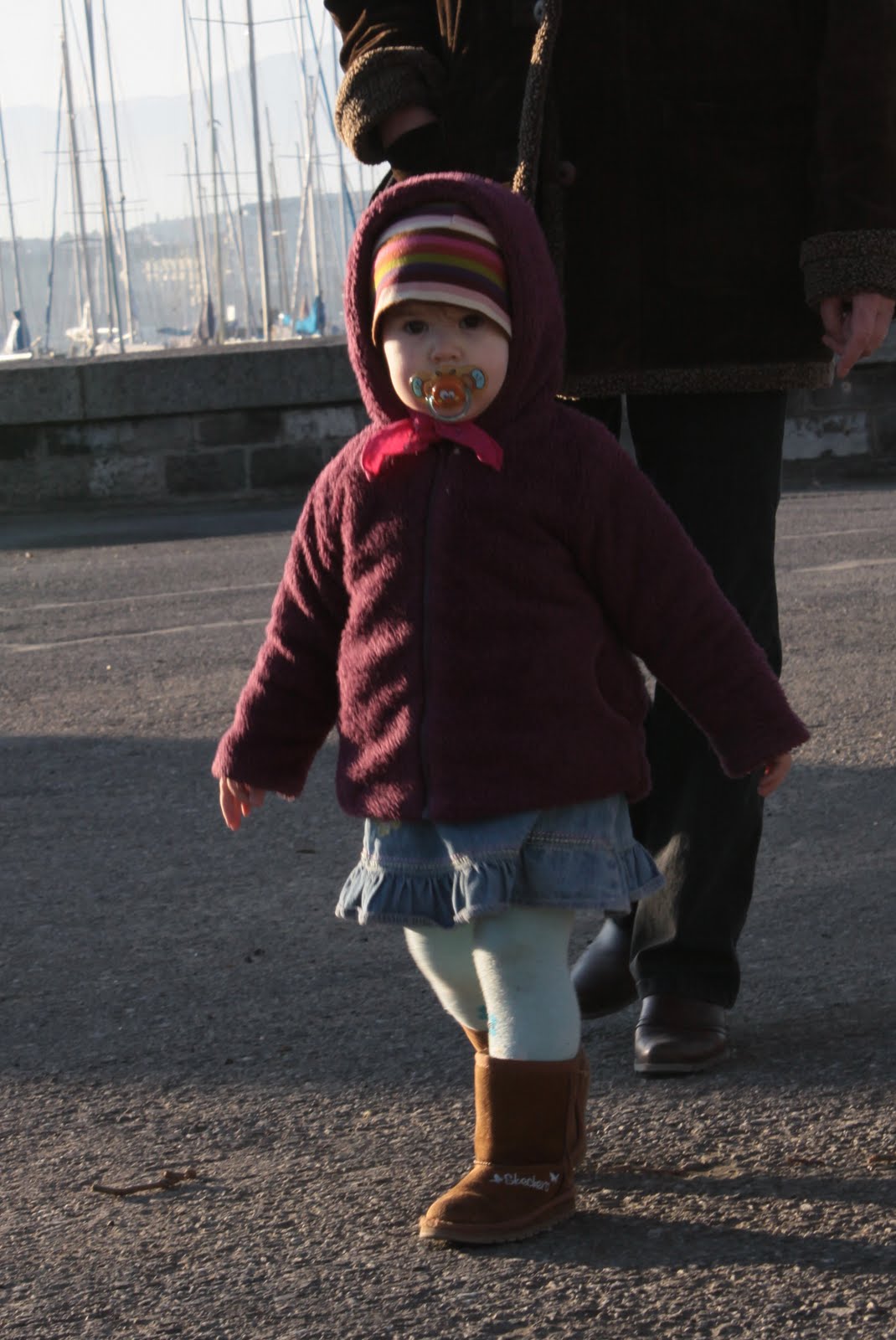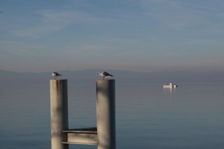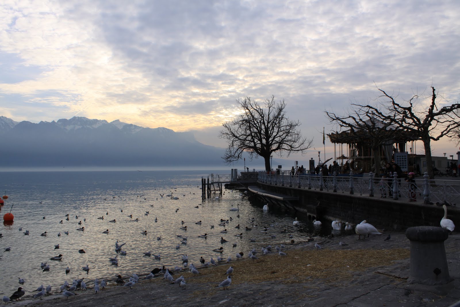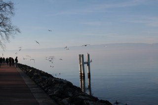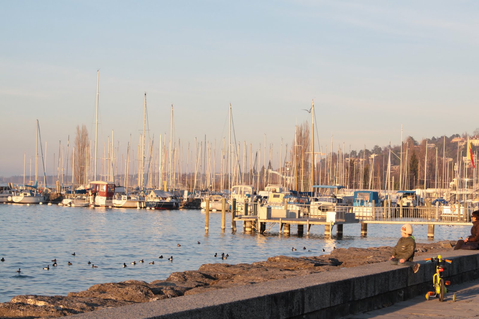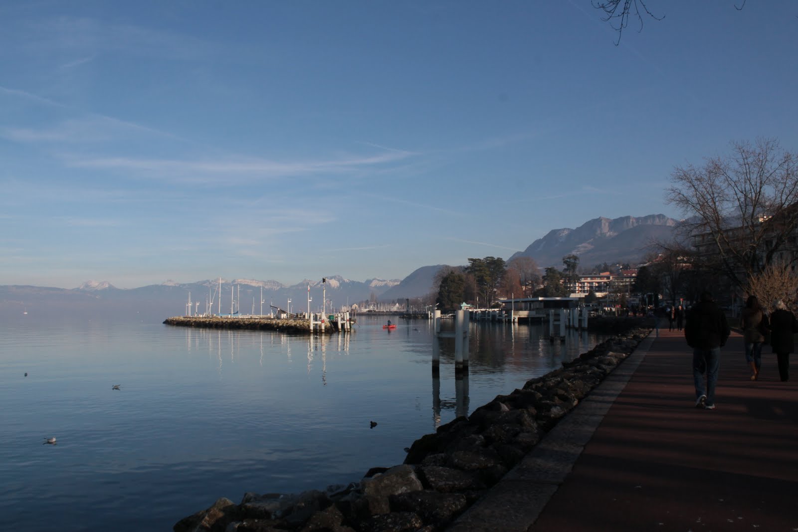 Néhány órás séta, ámuldozás, és fagyoskodás után tovább autóztunk Evianba. A város legszélén megálltunk, és gyalog mentünk tovább… tó, kikötő, sok ember, félcsövező gördeszkások, és rolleresek, játszóterek, napsütés… fagyoskodás 😀