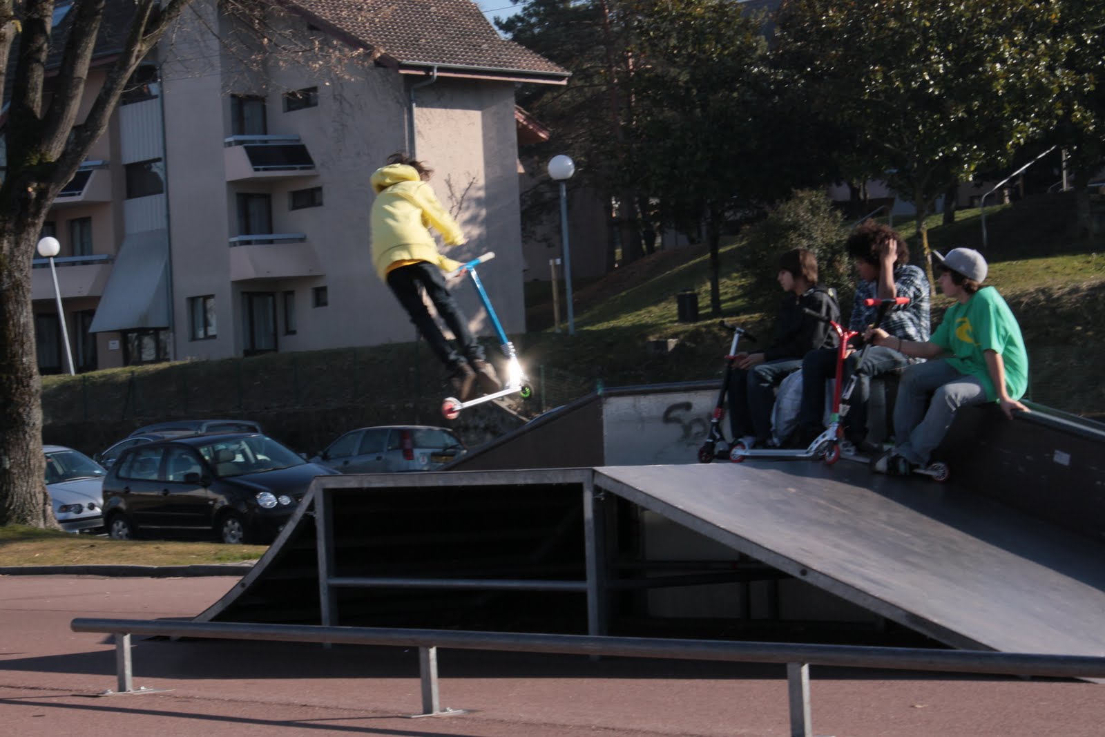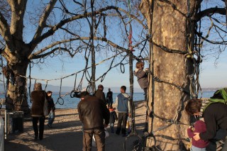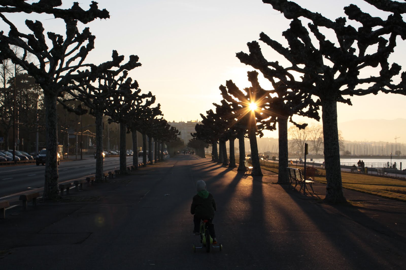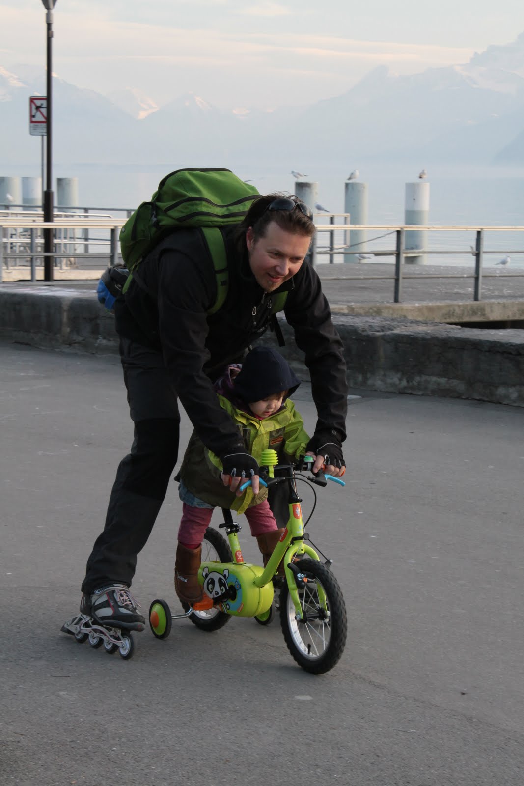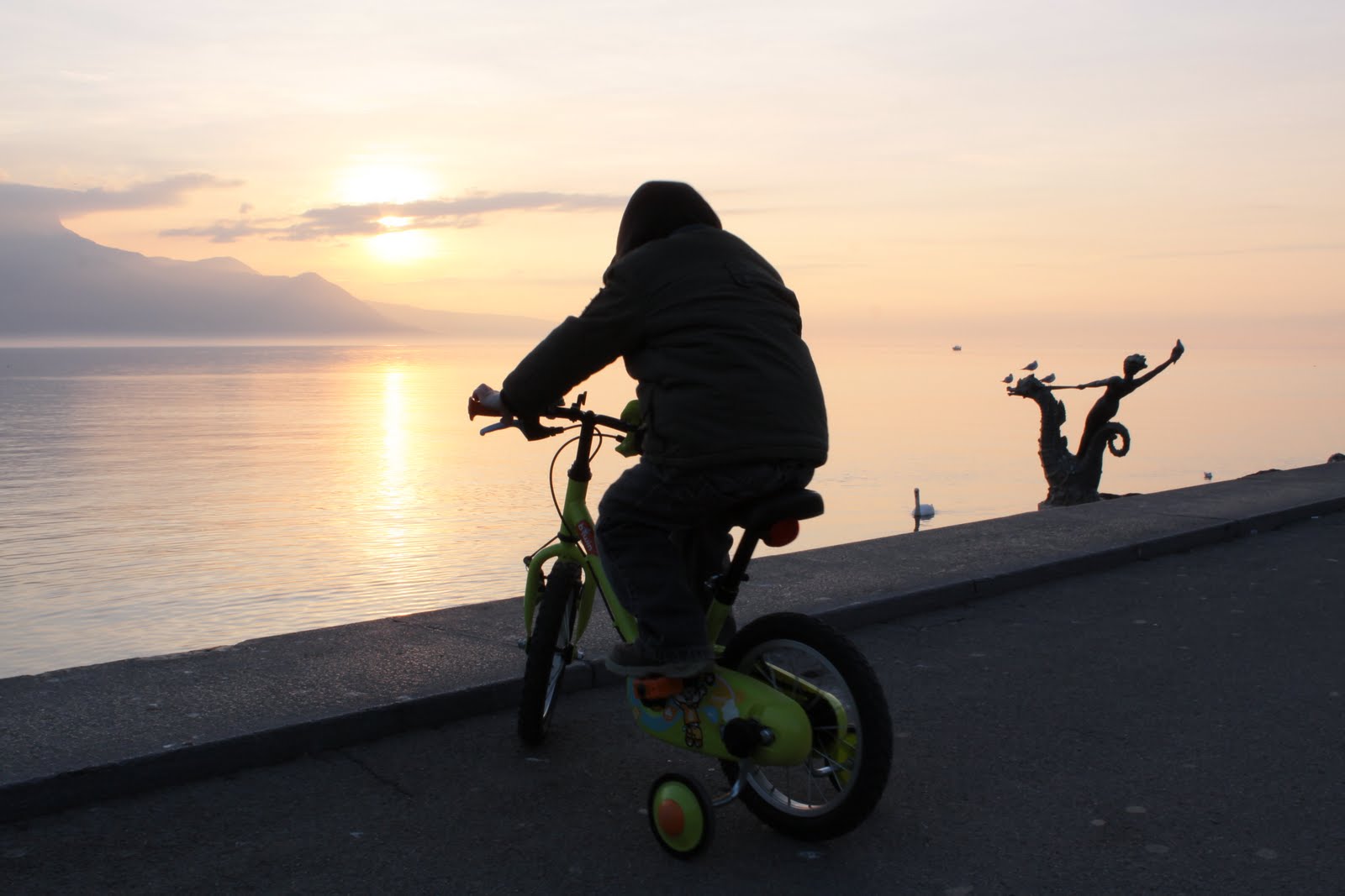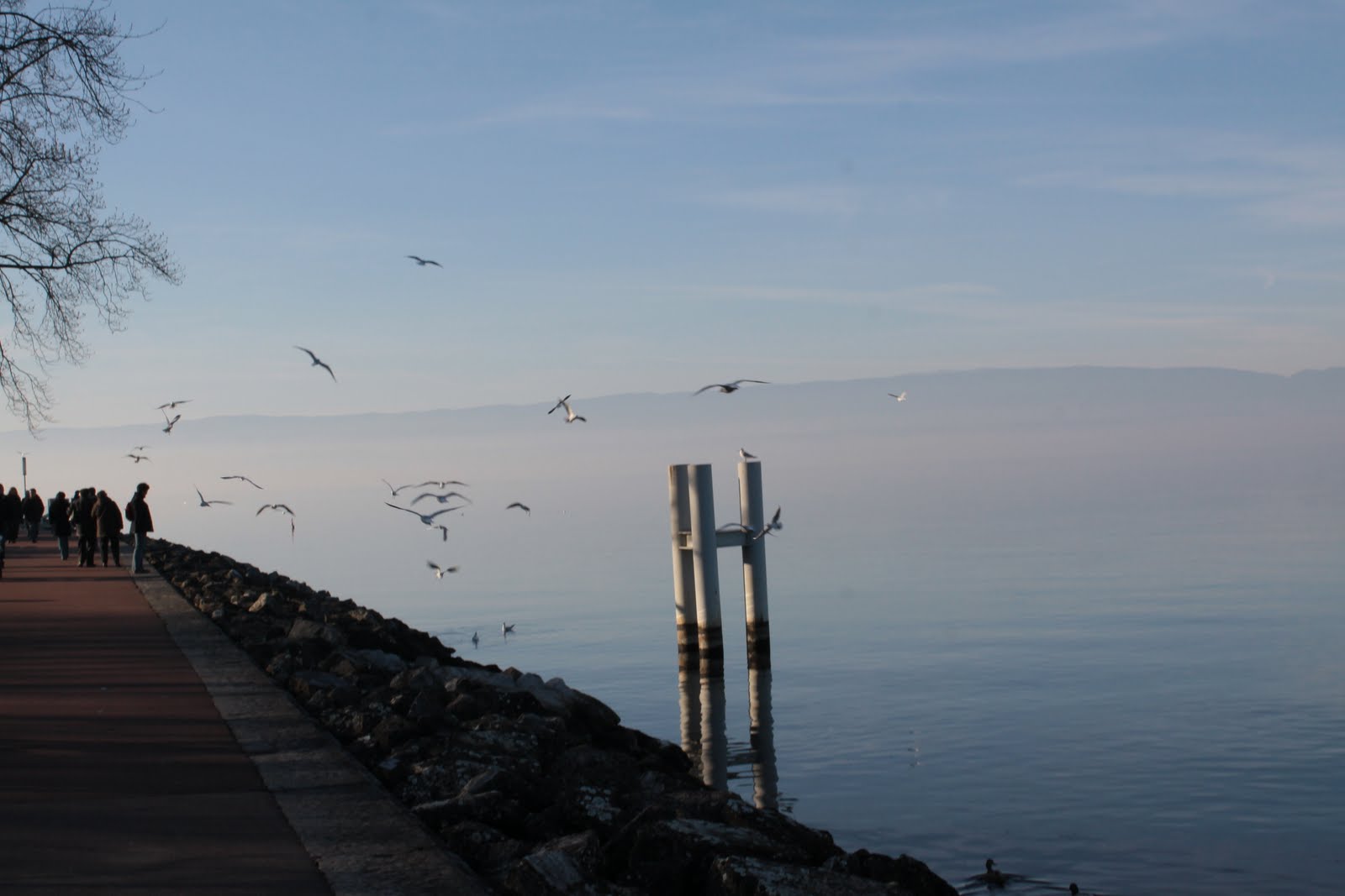 Néhány órás séta, ámuldozás, és fagyoskodás után tovább autóztunk Evianba. A város legszélén megálltunk, és gyalog mentünk tovább… tó, kikötő, sok ember, félcsövező gördeszkások, és rolleresek, játszóterek, napsütés… fagyoskodás 😀