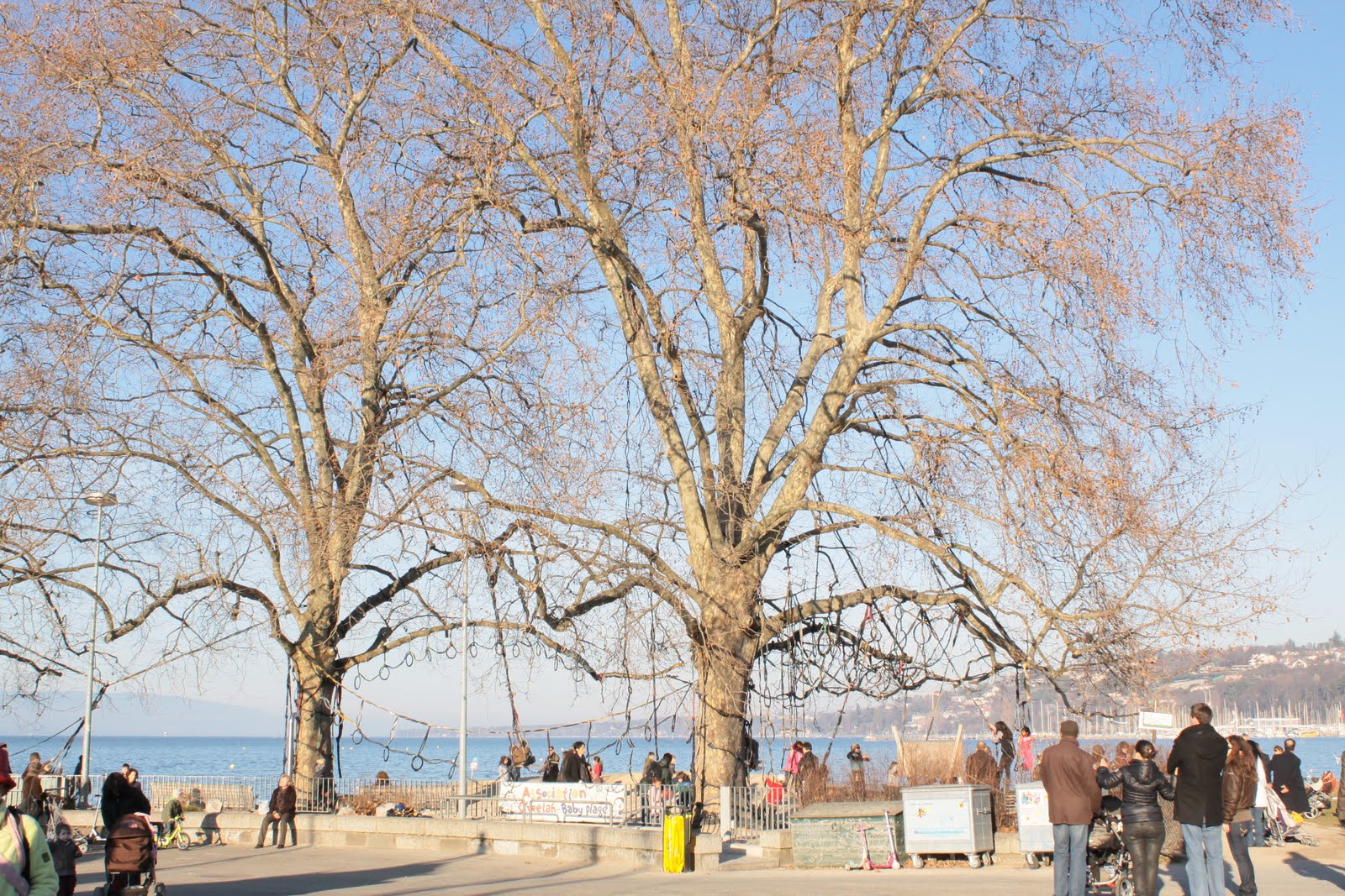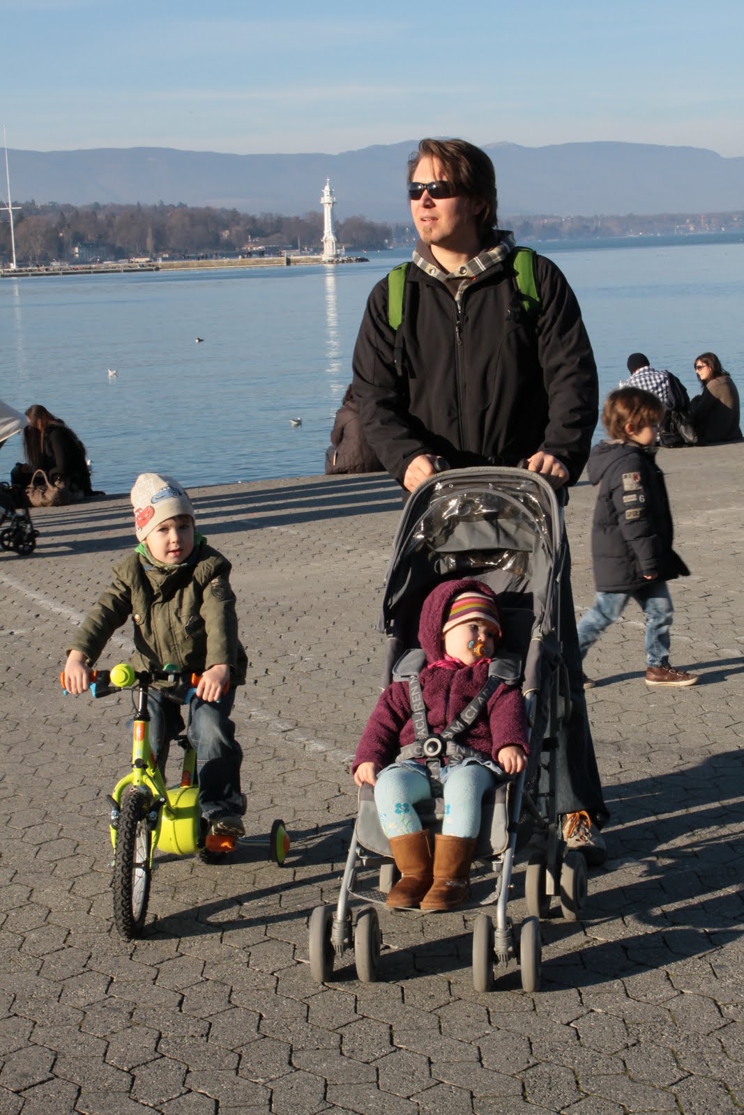 A néhány szabad óránkat Genfben, a tóparton töltöttük… kikötő, tó, sok ember, madarak, napsütés, játszótér (zseniális… kerékpár gumikból) … jól szórakoztunk 🙂