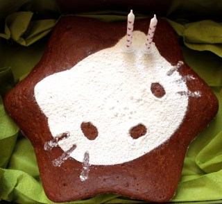 Egy papír sablon, néhány kavics, és porcukor segítségével díszítettem fel Kinga lányom csillag alakú, szülinapi tortáját.