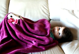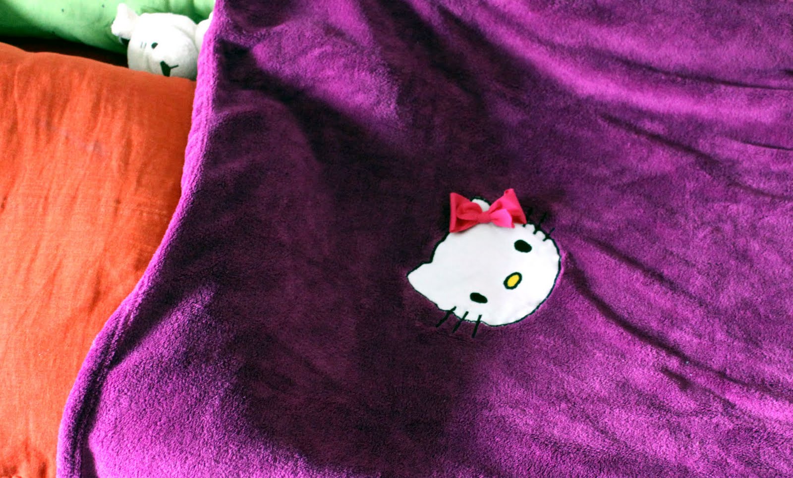 Minthogy érezhető a Hello Kitty láz, próbáltam készen venni ilyen kultuszmacskával díszített plédet a kicsi lányomnak. Nem sikerült… így kénytelen voltam önállósítani magam. A takarót vettem, a cicust varrtam.