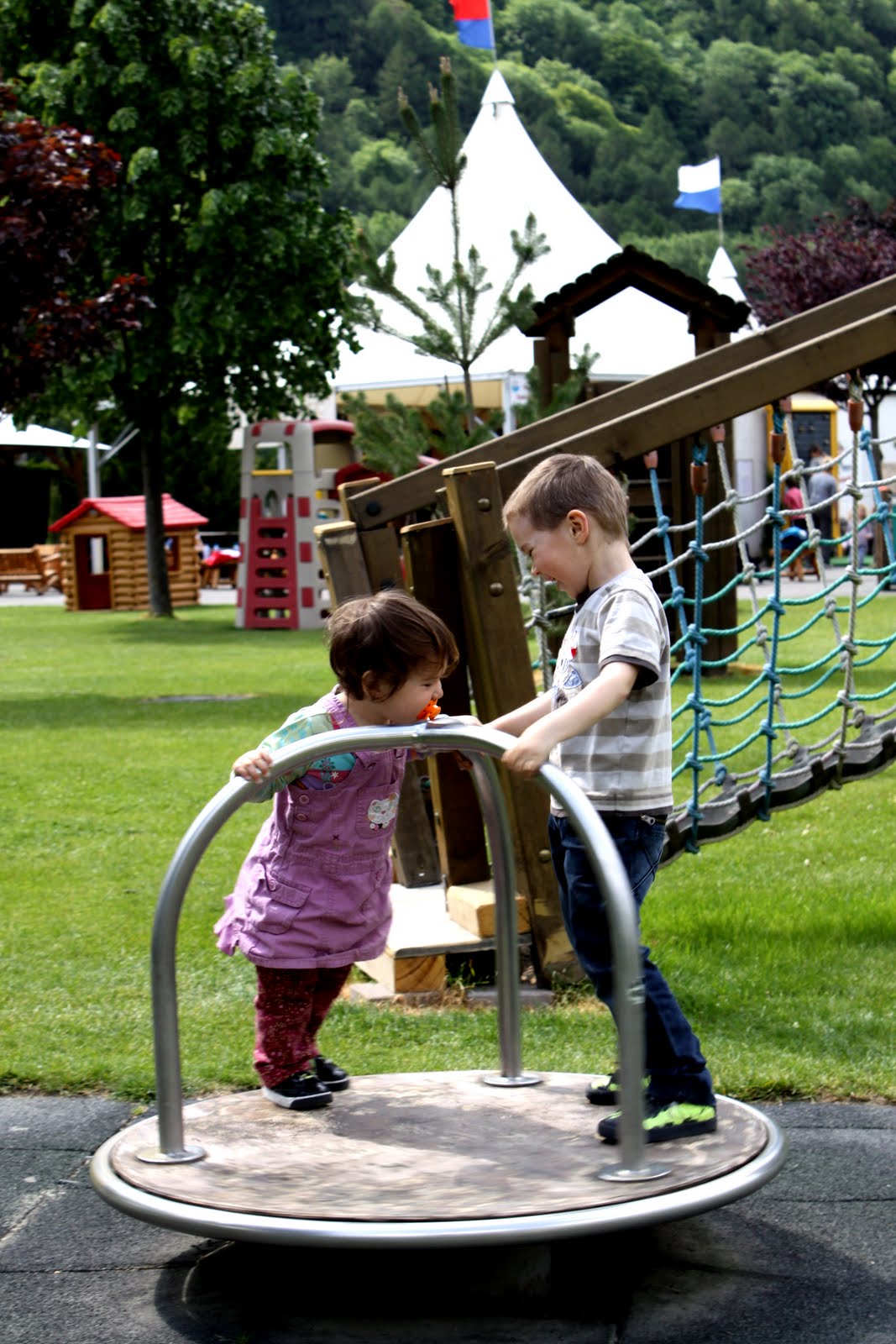 Lausanne-ba érve megállapítottuk, hogy menthetetlenül kisvárosiak vagyunk… túúúúúl nagy! túúúúúl város! Túúúúúl sok az ember, a ház, az aszfalt, az autó, a zaj… A Mekibe feltekertünk (1,2 km hegynek fel… büszke vagyok magamra!!!), majd vissza a tópartra… kis játszótér, kis körhinta, szaladgálás, és irány haza! Legközelebb Montreaux-be megyünk! 😀