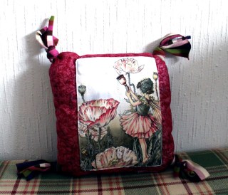 Ezen probléma feloldására találtam ki a hátizsákként cipelhető kispárnát… hogy betölthesse táska funkcióját is, varrtam rá egy zsebecskét… nem sok minden fér bele, de úgysem erőbajnokoknak készül…