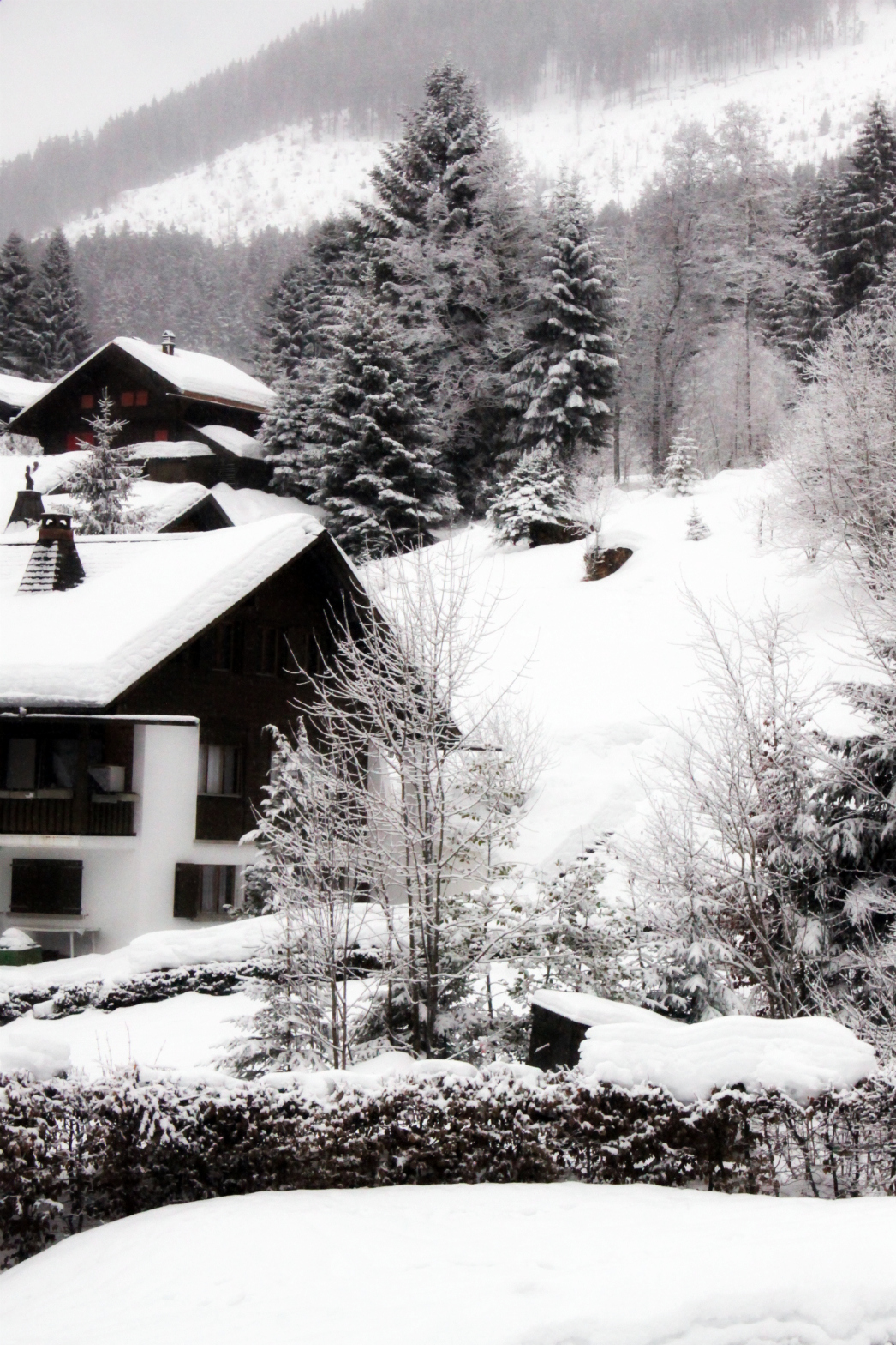 Eddig száraz időnk volt, a hatalmas hó már-már olvadozott körülöttünk, mígnem ma megint megjött a havazás… óriási pelyhekben hull alá a fehérség, minden színt, minden zajt beborítva. Este még be kell mennem Vevey-be apáért… remélem el tudok indulni 😀