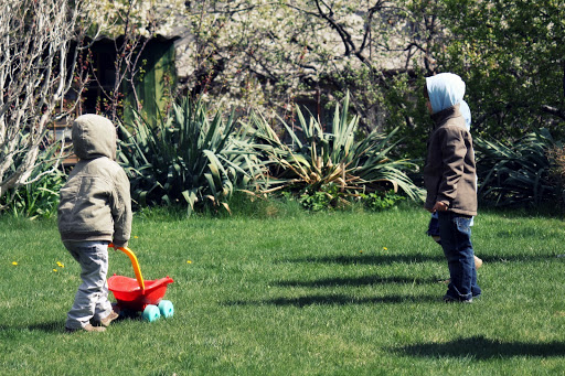 A húsvéti locsolkodás kimerült András és Samu látogatásában… szerencsére 😀 Kingus, a kis virágszál még elég harmatosnak érezte magát ahhoz, hogy maga helyett a szülinapi százszorszépét locsoltassa meg a fiúkkal. Most meg Nana vitte el őket további csokitojások felkutatására… mi meg ülünk itthon kettecskén, nyugiban, a tv-ben meg a Nagy durranás megy…