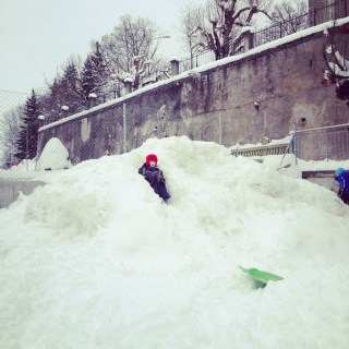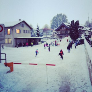 Egy ma reggeli kép az iskolaudvarról… a háttérben lévő hóbuckák picinykét megnőttek tegnap délután óta 🙂