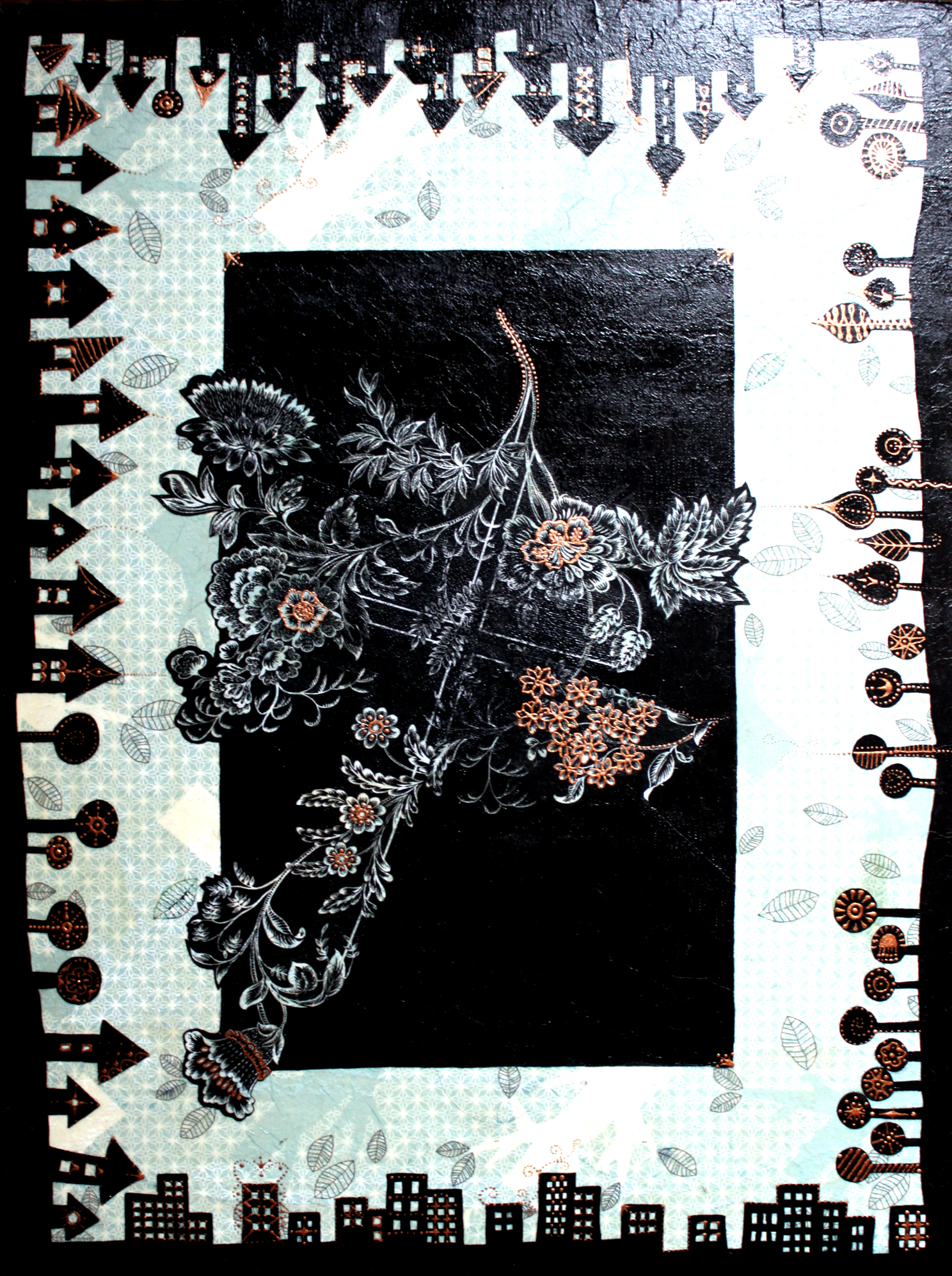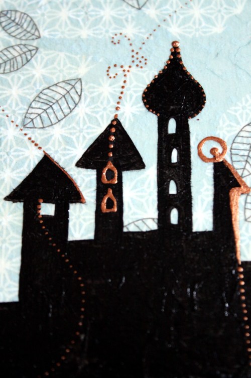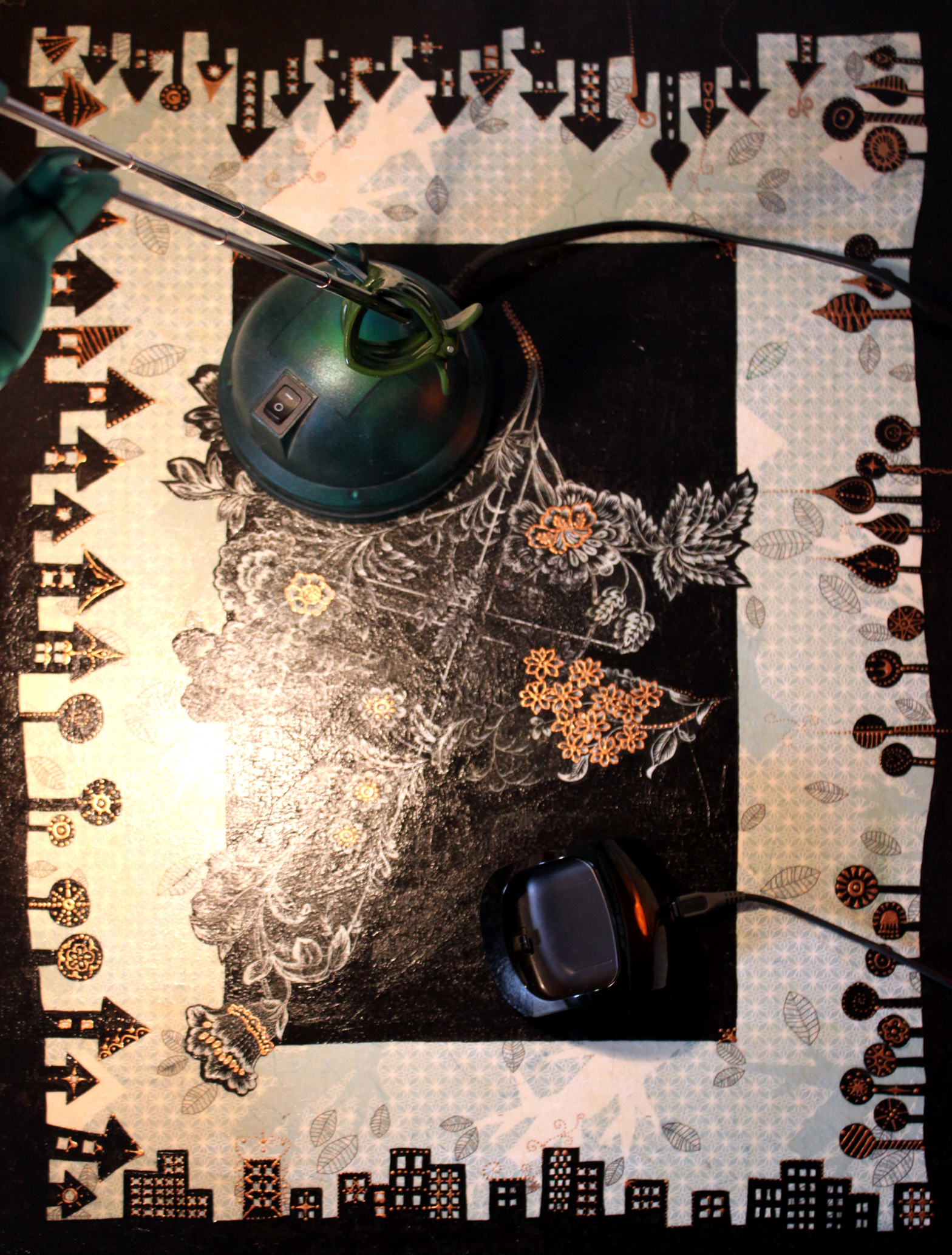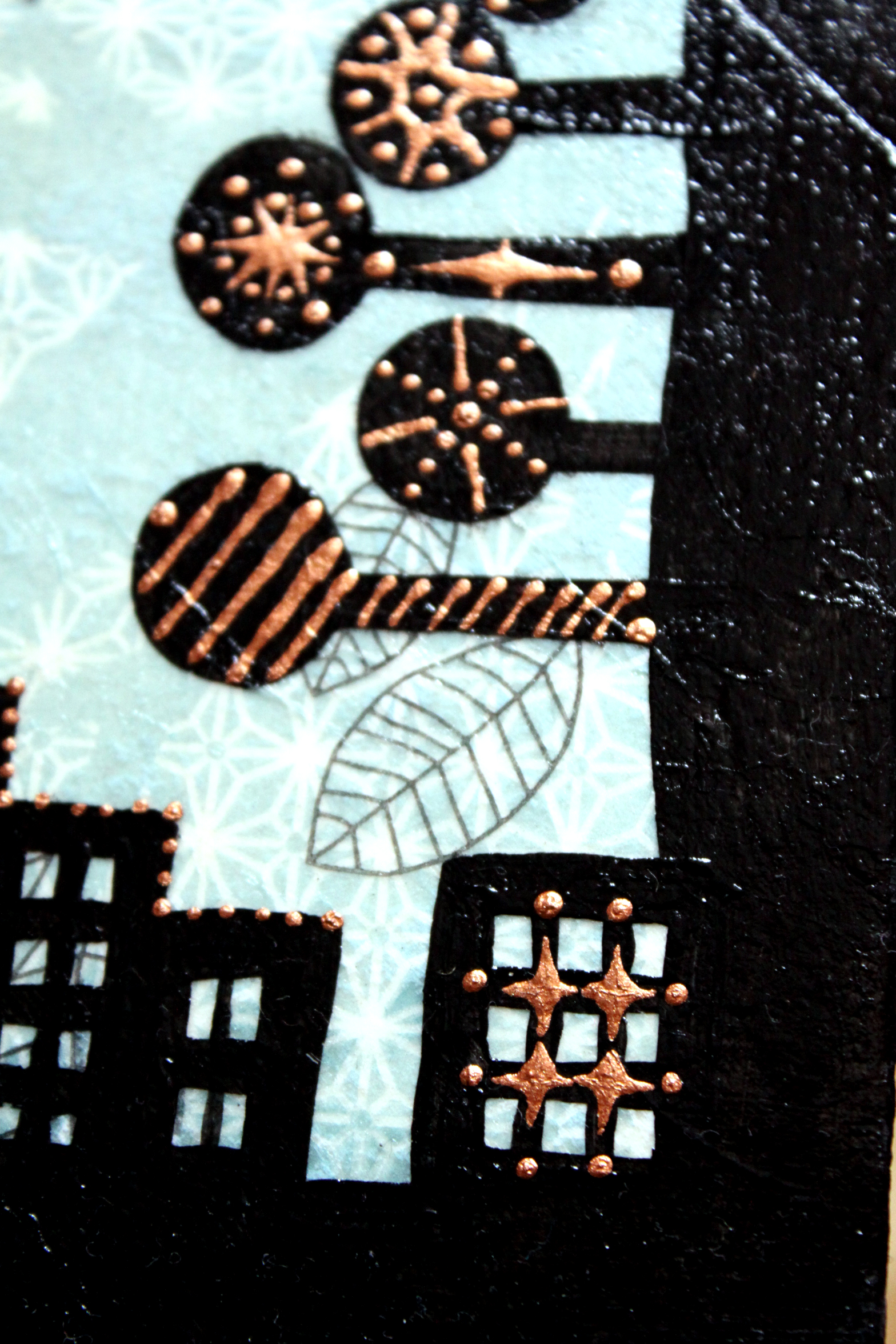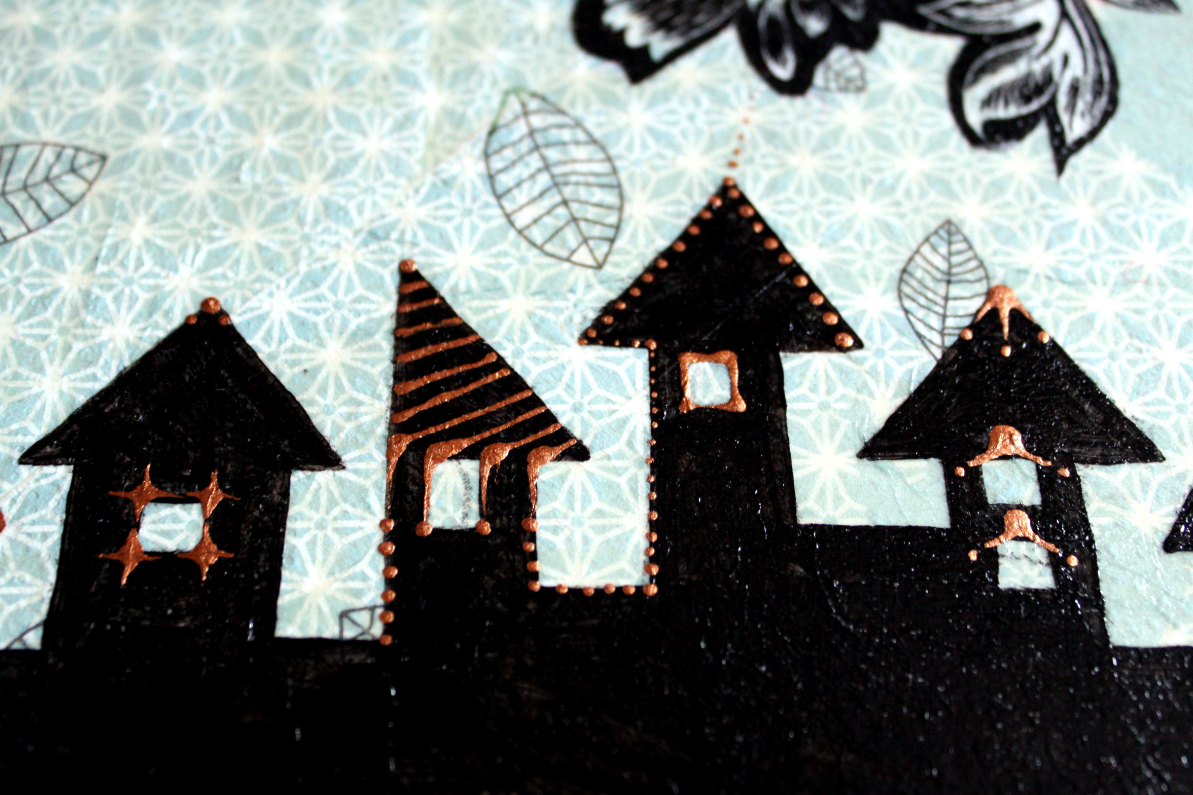 Először nem akartam ezt a megoldást feltenni a blogra, hiszen dekupázsolni mindenki tud… gondoltam… aztán amikor elkezdtem jöttem rá, hogy nagy, sima felületet egyenletesen lefedni még a jól bevált, és a hibák elfedésére kiváló szalvétatechnikával sem egyszerű… vissza is kellett szednem az egyik darabot, aminek csiszolás, újraragasztás lett az eredménye. Viszont magamat ismerve már az elején tudtam, hogy nem fogok megállni a dekupázsnál… jött hát a festegetés, kísérletezgetés, újabb szalvéta-réteg, majd a kedvencem, a kontúrpaszta.