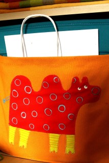 Ezen probléma feloldására találtam ki a hátizsákként cipelhető kispárnát… hogy betölthesse táska funkcióját is, varrtam rá egy zsebecskét… nem sok minden fér bele, de úgysem erőbajnokoknak készül…