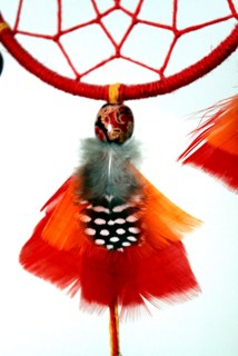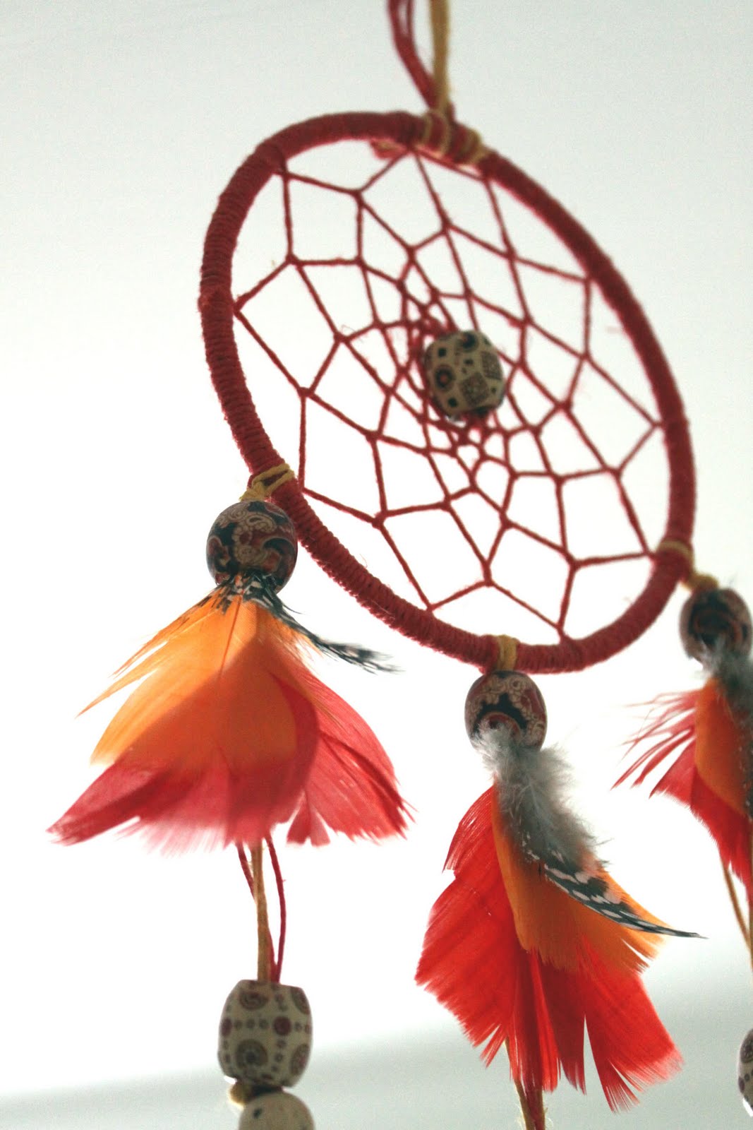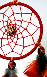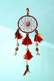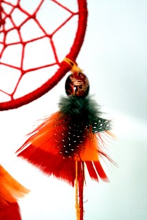 Még ezzel egy időben csináltam egy álomfogót. Az indiánok hite szerint a szerkentyű hálós részén fennakadnak a rossz álmok, míg a jók tovább jutnak a kis álomszuszékhoz. A tollakat időnként meg kell simogatni, hogy a háló megtisztuljon.