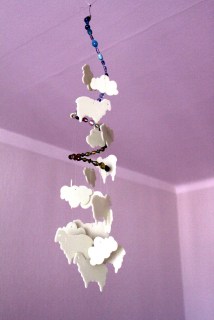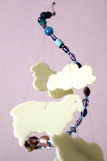 A harmadik fityegő már itt készült. Ennek alapelemei a foszforeszkáló báránykák, és felhő társaik. Az éjszakai fényen kívül nincs egyéb funkciója… babona sem kötődik hozzá… egyszerűen csak tetszik 🙂