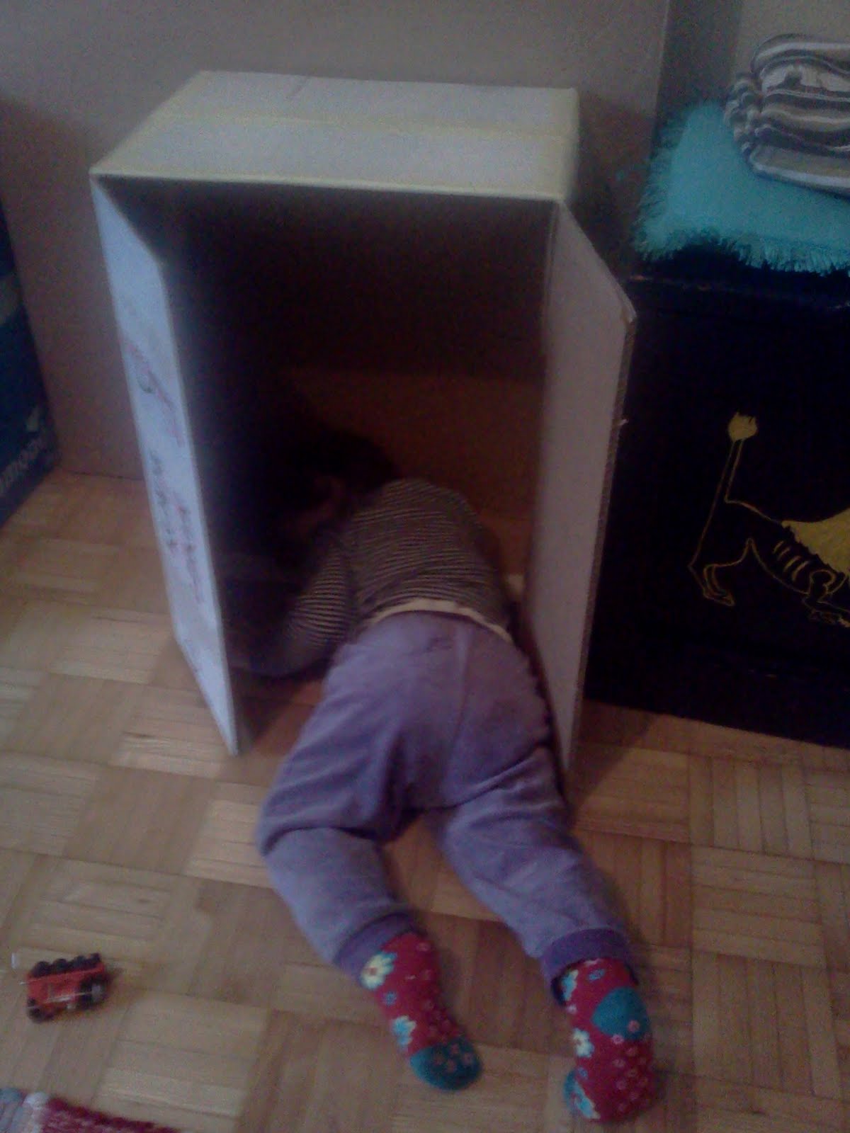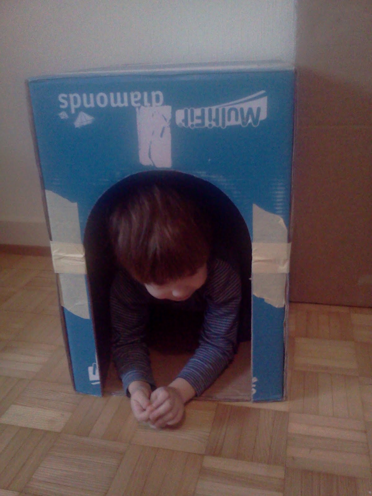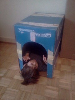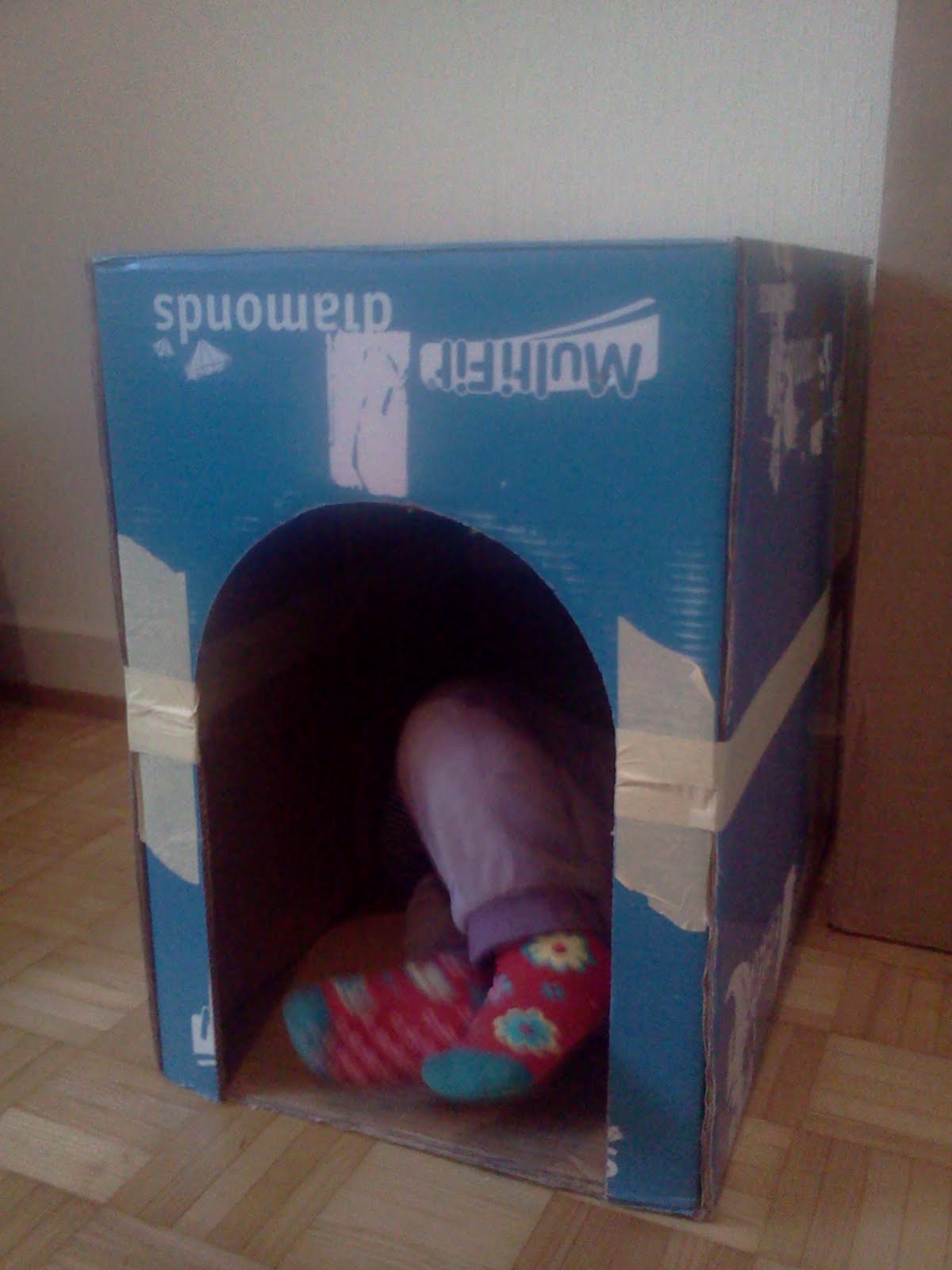 … és mindehhez pusztán egy gyümölcsös ládára, meg egy ív hullámkartonra volt szükség. Persze könnyen vagyok… most vettünk bútorokat az ikeában…