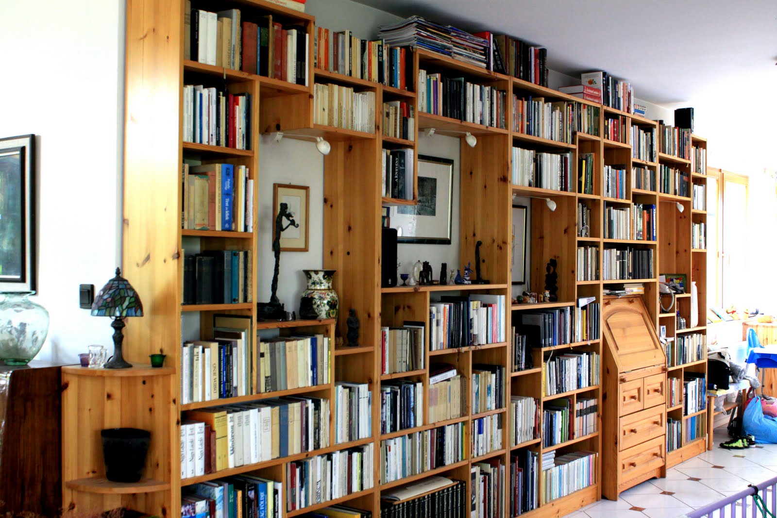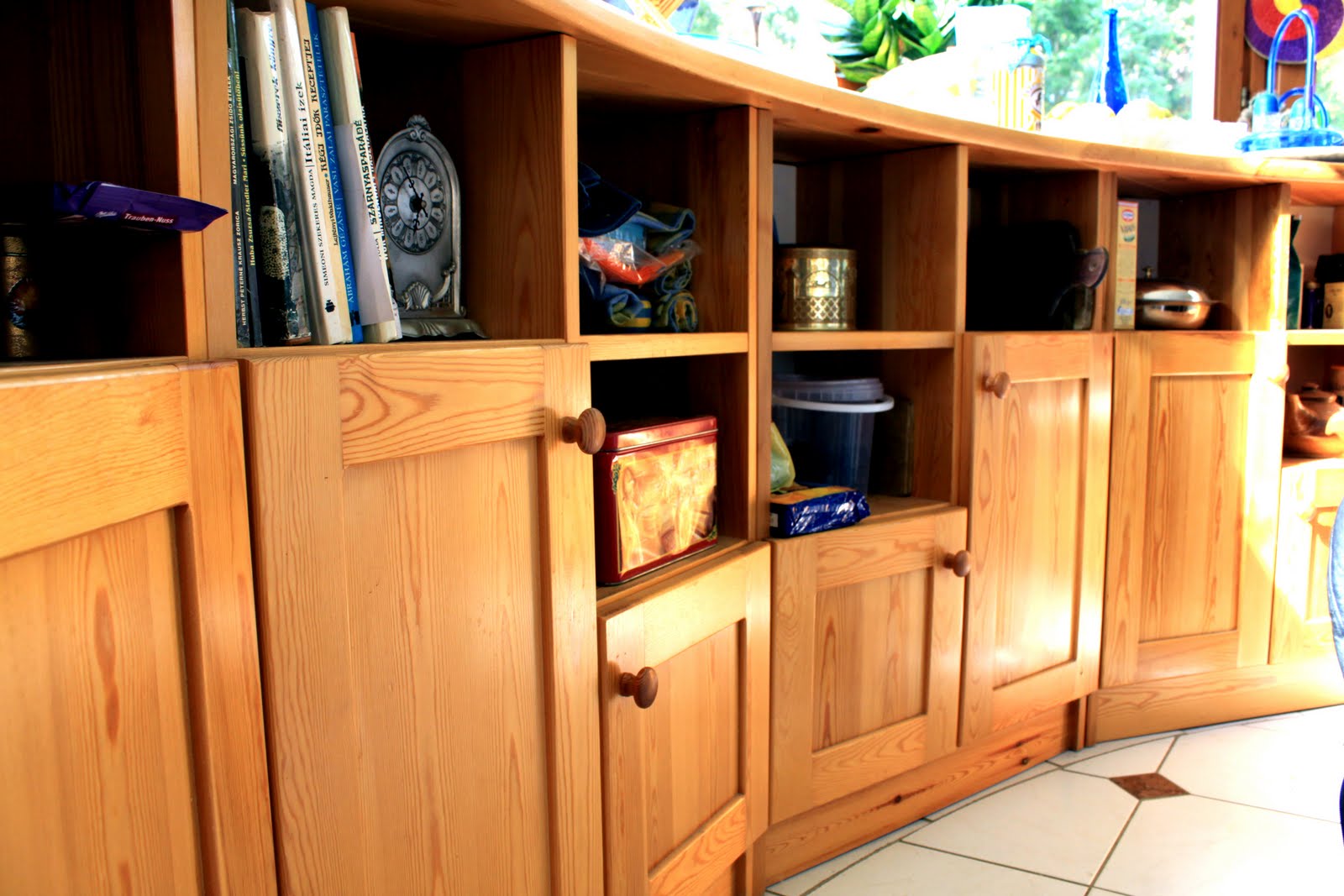 Nagynéném kért meg az egyetem végén, hogy tervezzek a lakásukba egy polcrendszert. A felaldat kézhezvételétől fogva az járt a fejemben, hogy minek is terveznék egyszerű, egyenes vonalban futó, egymástól egyenlő távolságra lévő polcokat… azt bármelyik asztalos meg tudja csinálni, nem kellek hozzá én… ennél különlegesebbet szerettem volna. Így született meg az alább látható polcrendszer. Borovi fenyőből készült, és egy kedves asztalos barátunk hihetetlen precizitásának (na meg a pontos terveknek) köszönhető, hogy elsőre sikerült a negatív sarokba is beilleszteni az oda való részt. A legnagyobb bókot az jelentette számomra, hogy a legtöbb látogató nem is vette észre… olyan volt, mintha mindig is ott lett volna.