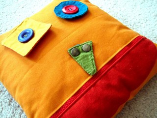 Amikor az unokatesók fél évesek lettek, mindketten egy-egy játszópárnát kaptak ajándékba. Nem másról van itt szó, mint olyan párnafejekről, amiknek lepatentolható orruk, szétzippzározható szájuk, legombolható, vagy letépőzárazható szemük van. Irtó helyes pofák lettek… íme: